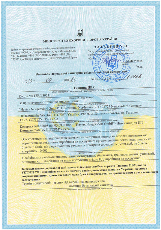 Our company established rigorous quality control of production that is confirmed by Certificate of Enterprise Conformity, Certificate of The Ministry of Health of Ukraine, GOST R Certificate of Confirmation and Attestation of Conformity CE in accordance with directives and regulations of European Union and Certificate ISO.