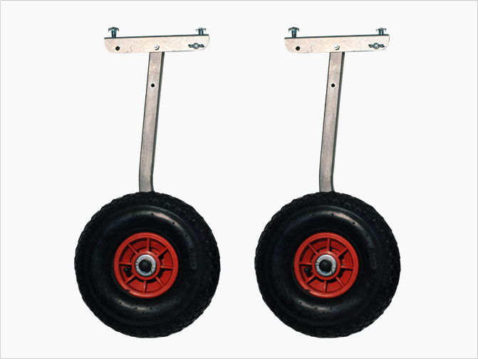 Transom wheels are easy to set and dismantle. They can move over sandy and stony areas without difficulties and as they can be folded wheels do not hinder the boat’s motion.